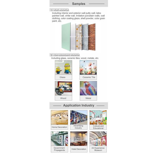 4. The wall inkjet printer using high-definition piezoelectric ink jet technology, high precision, high speed, and durability. Special designed nozzle for industry usage.